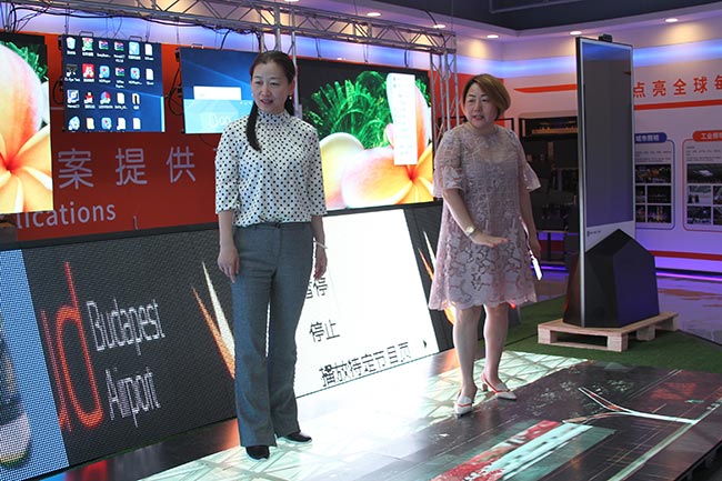 王立萍书记正在体验星空游戏P2.604镀膜地砖屏