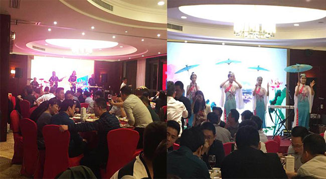 在随后的歌舞表演中,演员们为大家倾情演出,载歌载舞,引人入胜。在满座宾客把酒言欢、觥筹交错之间,星空游戏创始人龙平芳女士携公司业务团队,浙江灏诚科技执行董事袁晓澜先生携业务团队,星空游戏华中渠道商郑州世杰光电董事长田世杰先生、华北渠道商山西华龙光电总经理余浩先生一起合唱星空游戏企业歌曲《晶彩》,将联谊会气氛推至高潮……